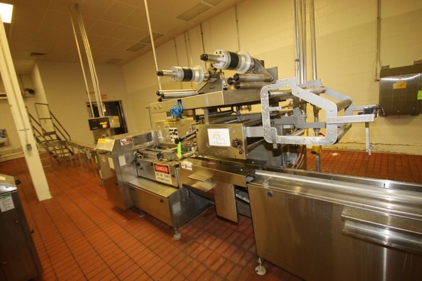FMC ServoFlo S/S Flow Wrapper, with S/S ControlPanel, with PLC, 480 Volts, 3 Phase (NOTE: Missing Some Infeed & Outfeed Conveyor & Other Components) (INV#81305) (LOCATED @ MDG AUCTION SHOWROOM 2.0 IN MONROEVILLE, PA) (Handling, Loading & Site Management Fee: $400)