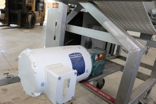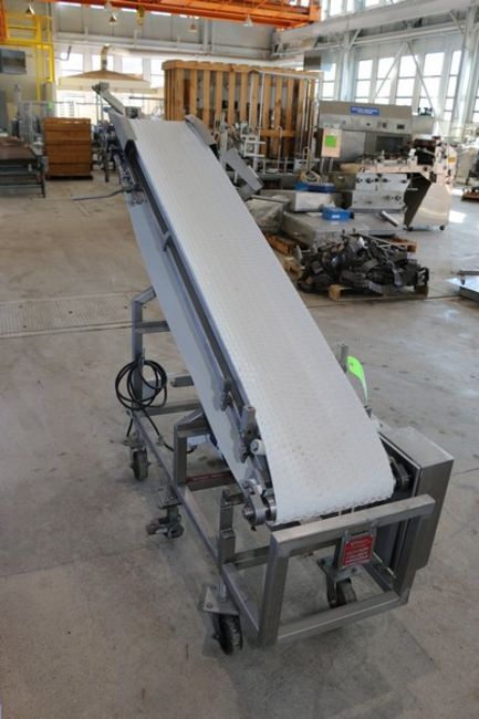 Raque S/S Incline Conveyor, Aprox. 80" L x 14" WRubber Belt, with Rubber Grip, with Baldor 1 hp Motor, Mounted on S/S Portable Frame, 208-230/460 Volts, 3 Phase (INV#81273) (LOCATED @ MDG AUCTION SHOWROOM 2.0 IN MONROEVILLE, PA) (Handling, Loading & Site Management Fee: $300)