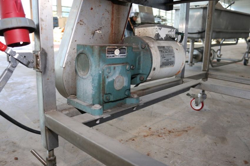 S/S Incline Conveyor, Aprox. 88" L Belt x 21-3/4W Belt, with Reliance 3/4 hp Motor, Mounted on S/S Portable Skid (INV#81274) (LOCATED @ MDG AUCTION SHOWROOM 2.0 IN MONROEVILLE, PA)(Handling, Loading & Site Management Fee: $300)