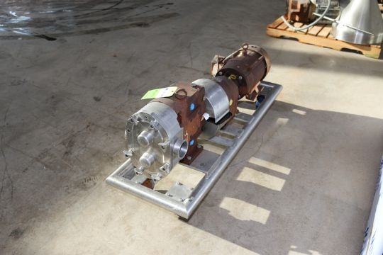 WCB 10 hp Positive Displacement Pump, M/N 130, S/N 425850 06, with Aprox. 2-3/4" Clamp Type Inlet/Outlet, with 1755 RPM Motor, Mounted on S/S Portable Frame (INV#81335)(Located @ the MDG Auction Showroom 2.0 in Monroeville, PA)(Handling, Loading & Site Management Fee: $300 USD)