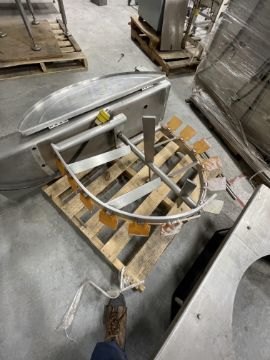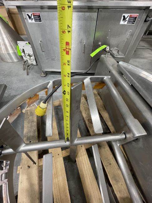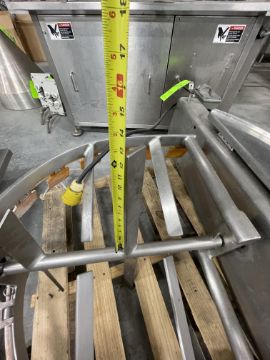 S/S SWEEP SCRAPE MIXER / AGITATOR BLADES WITH S/S BIRDGE AND DRIVE MOTOR, APPROX. 48" W AGITATOR BRIDGE, APPROX. 17" W FROM CENTER SHAFT TO SWEEP AGITATION ARM, APPROX. 34" W FROM SWEEP AGITATION ARM TO SWEEP AGITATION ARM, APPROX. 27" FROM BOTTOM OF AGITATOR TO TOP OF AGITATOR (BELOW LID) (RIGGING, LOADING, SITE MANAGEMENT FEE $100)