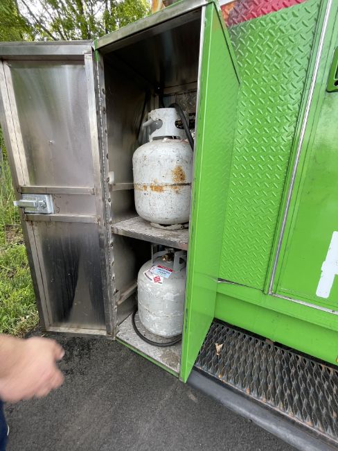 CHEVY FOOD TRUCK, VIN # 1GBJP32R1X3305727, APPROX. 136,316 MILES, LICENSE # 82465MM, CUMMINS ONAN QG GAS GENERATOR, MODEL 7HGJAE-2132L, S/N G190611458, 120 V, APPROX. 501 METER HOURS ON GENERATOR, (2) GAS TANKS, (1) GAS TANK FOR TRUCK AND (1) 30-40 GALLON GAS TANK FOR GENERATOR (NEW IN 2019), KITCHEN EQUIPMENT INCLUDES: 2019 AVANTCO FRYER (LESS THAN 2 MONTHS TOTAL USE), MODEL FF400-P, S/N 19100497 VA, CPG 6-BURNER RANGE, (4) SECTION S/S EXHAUST HOOD WITH ANSUL FIRE SUPPRESSION SYSTEM, TRUE MANUFACTURING 2-DOOR REACH IN REFRIGERATOR, MODEL TSSU-36-08, S/N 7090105, 115 V, PEERLESS 2-SECTION (TOP AND BOTTOM) PIZZA OVEN, MODEL CW61P, S/N 2N14P4439, TRUE MANUFACTURING SINGLE DOOR FREEZER, MODEL TUC-27F, S/N 7102809, TRUE MANUFACTURING 2-DOOR FREEZER, MODEL TUC-36, S/N 7074687, 3-BOWL S/S SINK, SINGLE BOWL SINK, ALL STAINLESS STEEL 50 GALLON WATER TANK, WATER HEATER, CASH REGISTER, 2019 TUNE UP INCLUDING: SHOCKS (FRONT AND REAR), FRONT ROTORS (2) FRONT BRAKE PADS (1 SET), INNER AND OUTTER BEARING / WHEEL SEAL, WHEEL BEARING (FRONT BOTH SIDES), LEAVE SPRINGS / PCV VAVLE, OIL AND FILTER, SPARK PLUGS / SPARK PLUG WIRE / DISTRIBUTOR CAP AND ROTORS, NYS INSPECTION / BRAKE FLUSHED, FRONT BOTH CALIBRATE, GOOD RUNNING VEHICLE