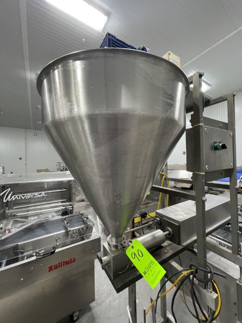 ORICS PISTON / AUGER FILLER, MODEL VFN D 3200 AGI, S/N MKP 4065, 90 PSI, APPROX. 24" DIA X 28" H FUNNEL, SKID MOUNTED ON CASTERS (RIGGING, LOADING, SITE MANAGEMENT FEE $200)