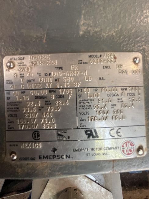 FRICK 12-CYLINDER RECIPROCATING COMPRESSOR, MODEL MCM, 522C0000/C, 60 HP, 1725 RPM, 230/460 V (RIGGING, LOADING, SITE MANAGEMENT FEE $200)