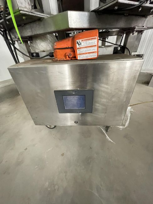 OHLSON 6-STATION PORTABLE S/S SEASONING BINS WITH SYNTRON MAGNETIC FEEDERS, MODEL 6 MI, S/N 2062, 2 CFM @ 60 HZ (RIGGING, LOADING, SITE MANAGEMENT FEE $250)