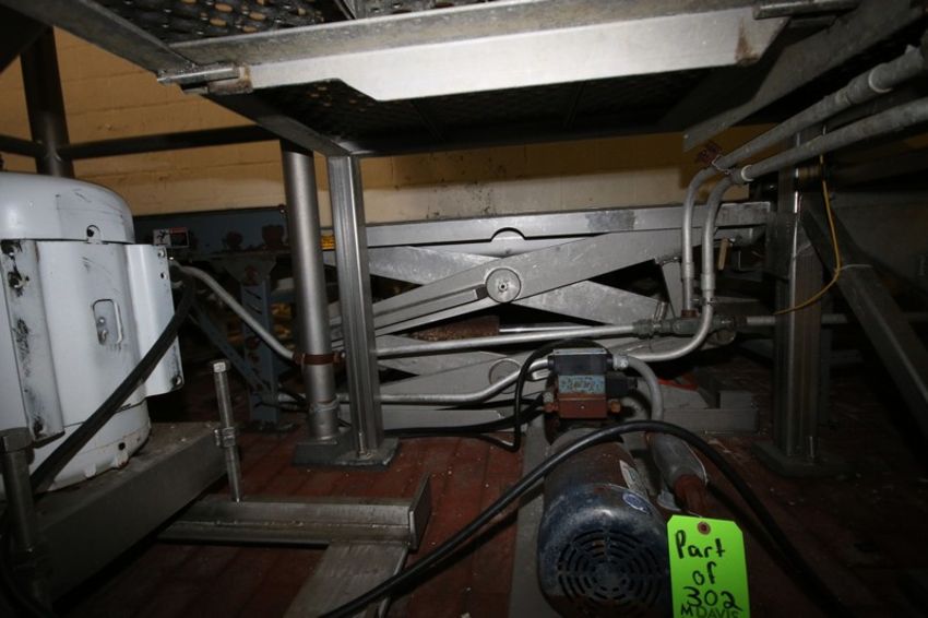 S/S Scissor Lift Table, with Roller Conveyor Type Top Area, Overall Dims. of Top Area: Aprox. 55" L x 32" W, with Hydraulic Pump (INV#81265) (LOCATED @ MDG AUCTION SHOWROOM 2.0 IN MONROEVILLE, PA) (Handling, Loading & Site Management Fee: $350)