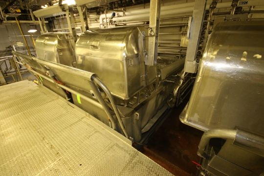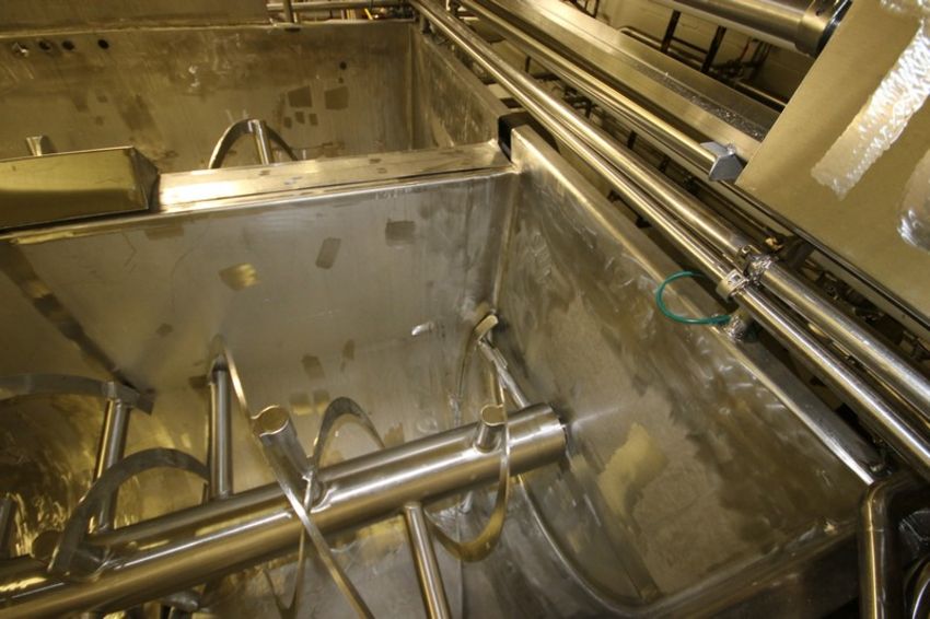 14,000 lb. S/S Ribbon Blender, S/N 64750-62, Item 26 L.H. 71-17, with Reliance 100 hp Motor, 1785 RPM, 460 Volts, 3 Phase, Internal Blending Compartment Dims.: Aprox. 144" L x 60" W x 66" Deep, with Bottom Discharge, Overall Dims. of Blender: Aprox. 186" L x 67" W x 107" H, Mounted on S/S Legs (INV#81307)(LOCATED IN CHAMPAIGN, IL) (Handling, Loading & Site Management Fee: $10,000)