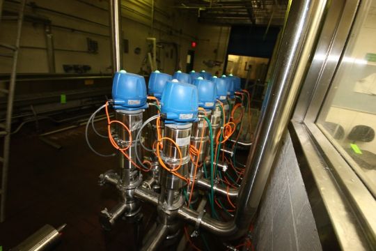 GEA 10-Valve Control Top Air Valve Cluster, Type: MAO-OD3"/OD3"-SZ-BE5/CLMN56-V1-15N/52/3A/B/2+TM1.L3AAU/67, Air Bar/PSI Min. 6.0/87, Max. 8.0/116, Clamp Type Valves, with S/S Manifold (NOTE: (2) Control Tops Damaged During Removal) (INV#81185) (LOCATED @ MDG AUCTION SHOWROOM 2.0 IN MONROEVILLE, PA) (Handling, Loading & Site Management Fee: $1500)