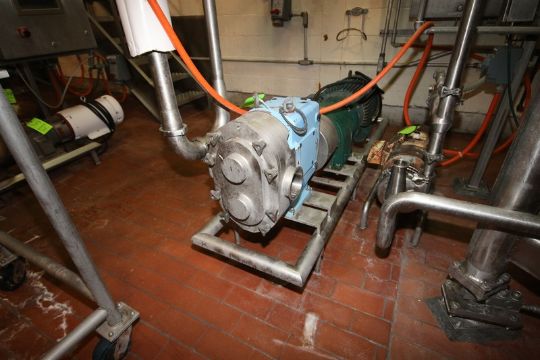 2016 SPX 25 hp Positive Displacement Pump, M/N 220 U1 R2-0, S/N 1000003076626, with Reliance 25 hp Motor, 1770 RPM, 230/460 Volts, 3 Phase, with Aprox. 4" Clamp Type Inlet/Outlet, Mounted on S/S Frame (INV#81237) (LOCATED @ MDG AUCTION SHOWROOM 2.0 IN MONROEVILLE, PA) (Handling, Loading & Site Management Fee: $300)