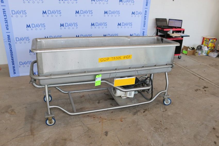 SANI-MATIC S/S COP Tank, Item #: 160548 REF, PO#: E65055, with Side Jet Spray, with 5 hp Centrifugal Pump, with 3505 RPM Motor, 230/460 Volts, 3 Phase, Internal Dims.: 75" L x 20" W x 17-1/2" Deep, Mounted on S/S Portable Frame (INV#81275) (LOCATED @ MDG AUCTION SHOWROOM 2.0 IN MONROEVILLE, PA)(Handling, Loading & Site Management Fee: $200)