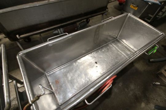 S/S Portable Trough, Internal Dims.: Aprox. 70-1/2" L x 25-1/2" W x 21" Deep, with Internal Pipe Spray, Mounted on Casters (INV#81323) (LOCATED @ MDG AUCTION SHOWROOM 2.0 IN MONROEVILLE, PA) (Handling, Loading & Site Management Fee: $100)
