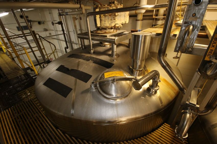 Cherry-Burrell 7,500 Gal. Vertical Jacketed Tank, S/N E-218-97, Max. Working Pressure, Heat Exchanger: 220 PSI @ 200 F, Minimum Design Metal Temp., Heat Exchanger: -20 F 200 PSIG, NAT'L BD. No.: 4707, with Top Mounted Vertical Agitation & Agitation Motor (NOTE: Formerly Stored Whey) (INV#81369)(LOCATED IN CHAMPAIGN, IL) (Handling, Loading & Site Management Fee: $30,000)