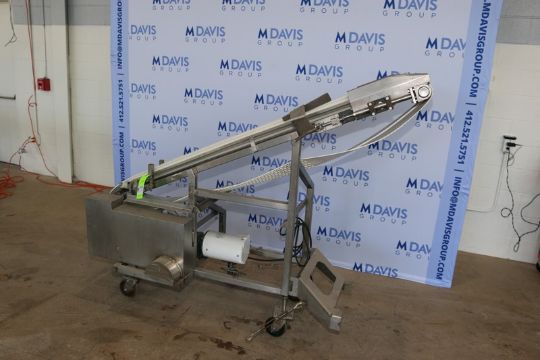Raque S/S Incline Conveyor, Aprox. 80" L x 14" W Rubber Belt, with Rubber Grip, with Baldor 1 hp Motor, Mounted on S/S Portable Frame, 208-230/460 Volts, 3 Phase (INV#81273) (LOCATED @ MDG AUCTION SHOWROOM 2.0 IN MONROEVILLE, PA)(Handling, Loading & Site Management Fee: $300)