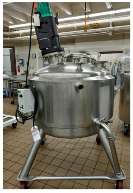 DCI 150 Gal. S/S Mixing Kettle, with 55 PSI Steam Jacket, with Lightnin Mixer, Mounted on Portable Frame (NOTE: Last Used to Process Dairy) (Handling, Loading, & Site Management Fee: $350.00 USD) (LOCATED IN HIALEAH, FL)