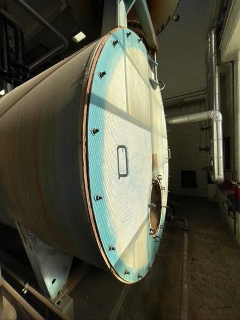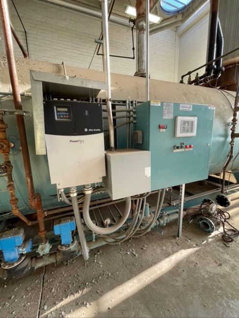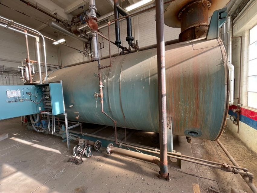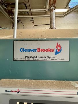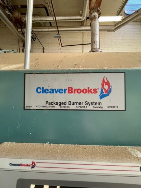 CLEAVER BROOKS HORIZONTAL NAT-GAS BOILER, 201 PACKAGED BURNER MODEL NTD168NGX-F09R, S/N T376204-1, 1,000 BTU/FT3, ALLEN-BRADLEY POWERFLEX 400 VFD, WITH LEESON MOTOR 50 HP 3565 RPM 208-230/460 V, INCLUDES DIFUSER TANK (Located Hughson, CA) (Old Tag #781)