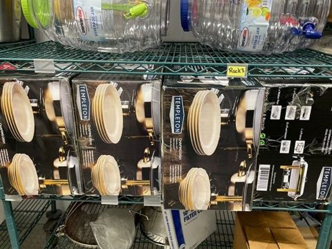 Lot of Assorted Hot Drink Holders, Cold Drink Holders, Chaffing Dishes, Sternos, Sieves, Kabob Skewers (NOTE: Rack Not Includes) (Auction ID 14f3fd47) (Handling, Loading, & Site Management Fee: $25.00 USD) (LOCATED IN SAN ANTONIO, TX)