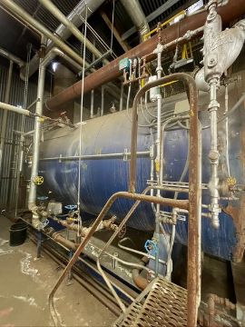JOHNSON HORIZONTAL NATURAL GAS BOILER, CAT NO 528-AHG, S/N S-4604, 1,000 BTU/FT3, WITH ALLEN-BRADLEY POWERFLEX 400 VFD, EQUIPPED WITH BALDOR MOTOR 40/30 HP 3530/2950 RPM 208-230/460 V (Located Hughson, CA) (Old Tag #782)