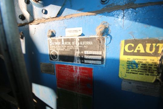 COMPLETE GLYCOL REFRIGERATION SYSTEM: Includes--(1) Genuine Carlyle 125 hp 8-Piston Freon Compressor, M/N 5H80-A219, with Lincoln 1770 RPM Motor, 230/460 Volts, 3 Phase, with Furnas Soft Starter; (1) Genuine Carlyle 125 hp 8-Piston Freon Compressor, M/N 5H80-A219, with Lincoln 1782 RPM Motor, 230/460 Volts, 3 Phase, with Furnas Soft Starter; (1) Genuine Carlyle 125 hp 8-Piston Freon Compressor, M/N 5H80-A219, with Lincoln 1770 RPM Motor, 230/460 Volts, 3 Phase, with Furnas Soft Starter; (1) Vertical Refrigeration Vales Freon Accumulation System, NAT'L BD: #2197, MAWP 50 PSI @ 300 F, -20 F @ 150 PSI; (1) Horizontal RSD Freon Receiver Tank, Previously Received R407F; BAC Evaporator Unit, M/N VLG-225A, S/N 78-8914M, Belt No. 4-B90; (1) 2011 Frick 3-Fan Evaporator, S/N 300/620116.0003, 460 Volts, 3 Phase, Pro. #: 507281 (1) 2011 Frick 3-Fan Evaporator, 460 Volts, 3 Phase (1) 2011 Frick 3-Fan Evaporator, 460 Volts, 3 Phase, (Handling, Loading, & Site Management Fee: TBA USD) (LOCATED IN STOCKTON, CA)