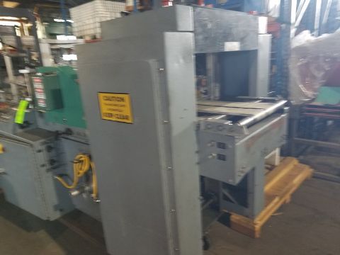 Shanklin F-1 automatic shrink wrapper, serial F9558, volt 230, 11-phase, PLC, belted infeed random product feed, EZ open side sealer, adjustable inverting head, salvage winder, general purpose perforator (Located Fort Worth, TX)(Handling, Loading & Site Management Fee: $250 USD)
