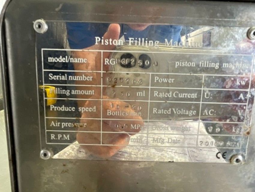 Resto Piston Filling Machine (NOTE: Formerly Filled 16 oz. Products) (Auction I.D. 63503186)(Handling, Loading, & Site Management Fee: $50.00 USD) (LOCATED IN SAN ANTONIO, TX)