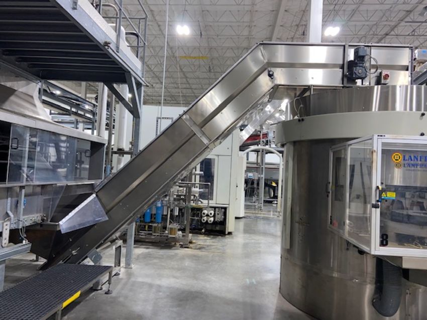PACKAGE DEAL: (1) LanFranchi S/S Bottle Unscrambler, Type L2.SF.14.18, S/N 13568.929.03, 18,000 Bottles Per Hour, 480 Volts, 3 Phase; (1) S/S Incline Conveyor, with Aprox. 22" W Rubber Belt, with Top Mounted Motor, with Plastic Belt Covers, with S/S Control Panel, with Allen-Bradley 7-Slot PLC & Allen-Bradley PanelView 550; (1) 2003 Sidel 120-Head Filler/Capper Machine, Type GRAVITI, M/N FSF120, S/N WRIA00203L, with (30) Head Capping Station, with 3-Door Control Panel; (1) Closure Systems International Waterfall Conveyor, S/N ES240087, 460 Volts, 3 Phase, with S/S Hopper; (1) Krones Canmatic Labeler, M/N 073-R22, 460 Volts, 3 Phase, with CS10 Touchpad Display (Handling, Loading, & Site Management Fee: $6,000.00 USD) (LOCATED IN HOUSTON, TX)