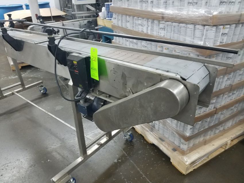 7 1/2" wide x 96" long x 38" high stainless steel plastic belt conveyor, speed control (Located Fort Worth, TX)(Handling, Loading & Site Management Fee: $100 USD)