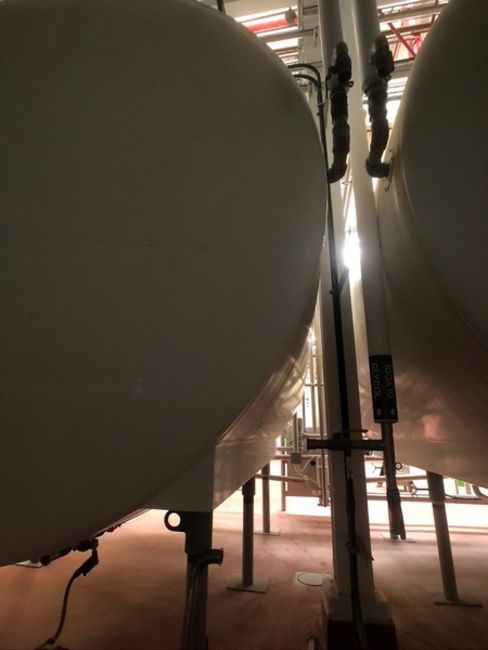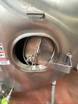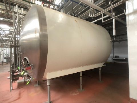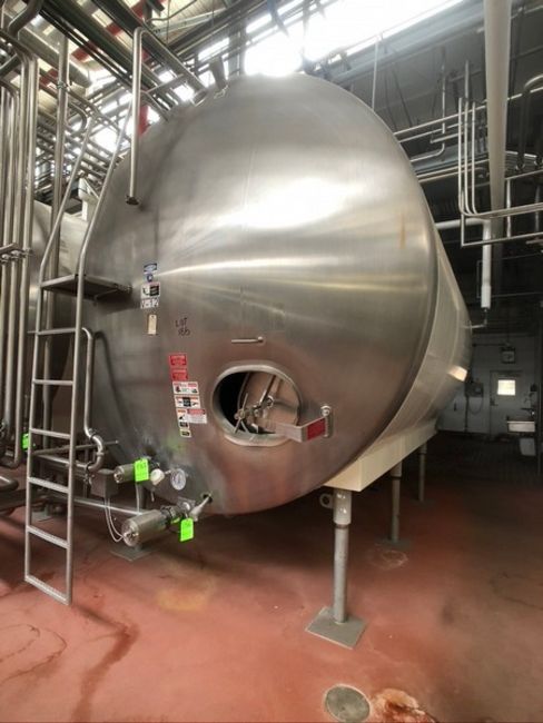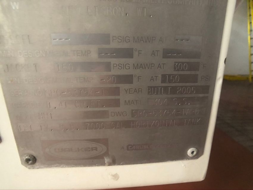 (1) WALKER 7,000 GALLONHORIZONTAL S/S GLYCOL JACKETED TANK, MODEL HHT, S/N SPG-53754-1 WITH VERTICAL AGITATION, S/S FRONTS (RECENTLY REFURBISHED) (Located Hughson, CA) (Old Tag #185)