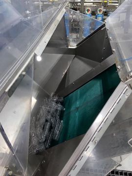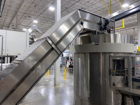 S/S Incline Conveyor, with Aprox. 22" W Rubber Belt, with Top Mounted Motor, with Plastic Belt Covers, with S/S Control Panel, with Allen-Bradley 7-Slot PLC & Allen-Bradley PanelView 550 (Handling, Loading, & Site Management Fee: $500.00 USD) (LOCATED IN HOUSTON, TX)