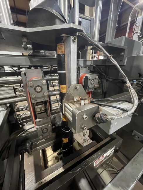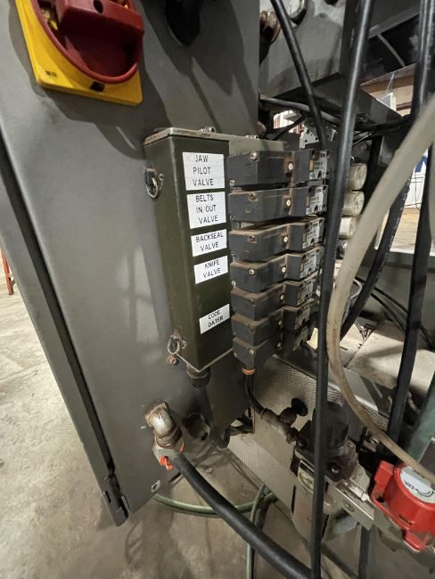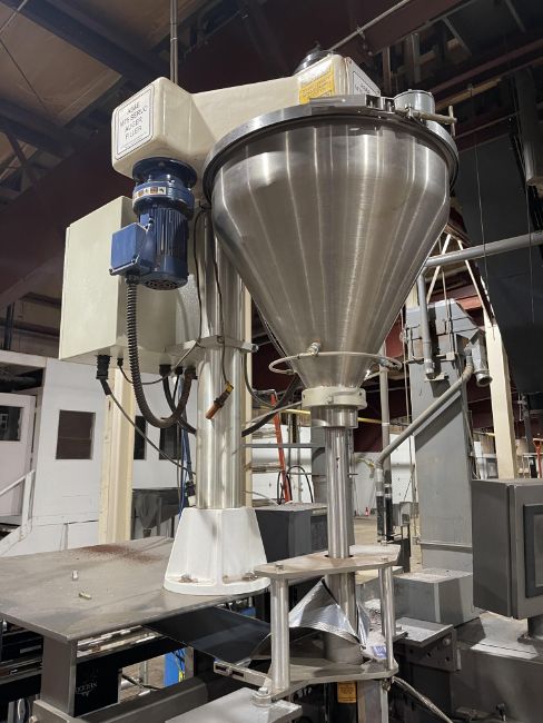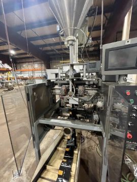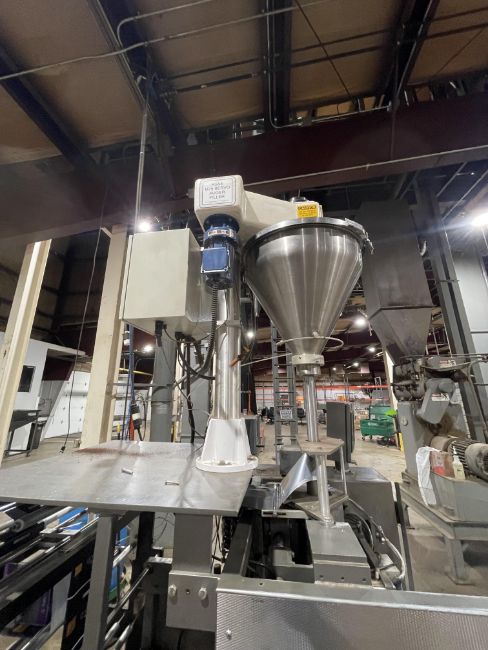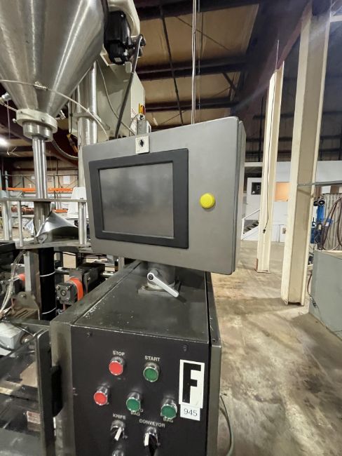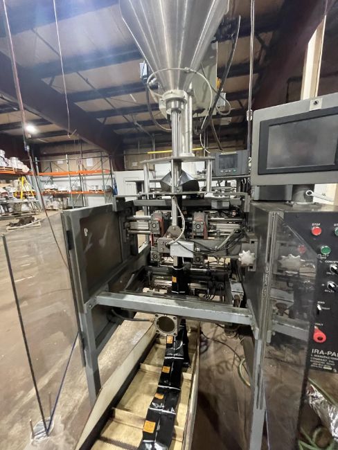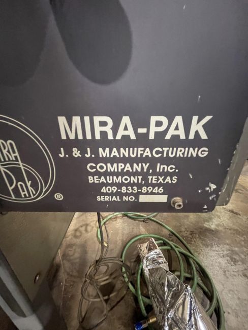 MIRA-PAK VERTICAL FORM FILL AND SEAL (VFFS), AUTOMATION SUPPLY AND ENGINEERING (AS&E) M75 SERVO AUGER FILLER, MODEL 75 SERVO AUGER FILLER, S/N 1586 MARCH 16, 2009, OUTFEED INCLINE CONVEYOR APPROX. 96" L X 12" W X 40" H, PREVIOUSLY RUNNING 60-70 BPM, UP TO 2-1/2 FRAC PAK, APPROX. 15" W SEAL JAWS, (4) FORMING HEADS INCLUDING INSTALLED HEAD, (2) FORMING HEAD FOR 9-5/8 WIDTH FILM, (2) FORMING HEAD FOR 9-1/8 WIDTH FILM, MARKEM IMAJE SMART DATE 5 DATE CODER, REPORTED 60-70 BAGS PER MINUTE, CONTROL CABINET WITH HMI, 240 V, 3 PHASE