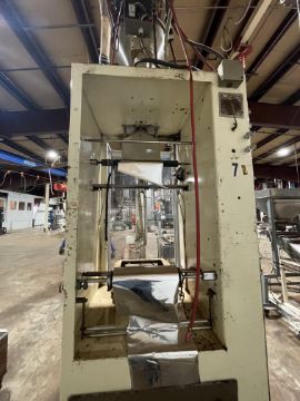 GENERAL 2-4 LB BAG VERTICAL FORM FILL SEAL (VFFS) FILLER WITH AMS SINGLE AUGER FILLER, PREVIOUSLY FILLING 2 LB BAGS AT 20 BPM, 4 LB BAGS AT 12 BPM, 13" AND 14" FILM, ROACH OUTFEED INCLINE CONVEYOR APPROX. DIMS: 86" L X 12" W X 32" H, EXTRA FORMING TUBE INCLUDED