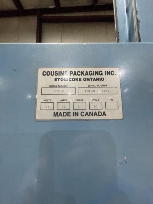 COUSINS PACKAGING PALLET WRAPPER, MODEL LP2100, S/N 150300-21-2493, WITH PALLET TURNTABLE, 115 VOLT, 1 PHASE