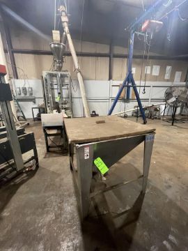 HAPMAN HELIX S/S HOPPER WITH AUGER CONVEYOR, MODEL 400 SS, S/N X11072-00, APPROX. HOPPER DIMS 38" L X 42" W X 36" H, AUGER APPROX. HEIGHT 162", (FEEDING INTO LOT 24)