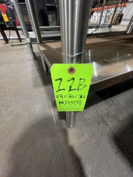REGENCY S/S TABLE, APPROX. 48" X 30 X 30"WITH S/S BOTTOM SHELF AND BACKSPLASH