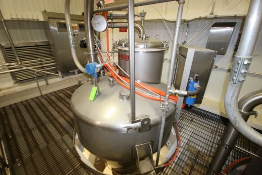 Nu-Con Powder Receiver & Scale S/S Hoppers,M/N Scale Hopper #2, S/N N05037-530B, Receiver: M/N NCVR 18-8-3T, S/N N05037-520B, Scale Hopper: with S/S Auger Feeder Chute, with (2) Fairbanks Digital Read Out (INV#81361)(Located @ the MDG Auction Showroom 2.0 in Monroeville, PA)(Handling, Loading & Site Management Fee: $300.00 USD)