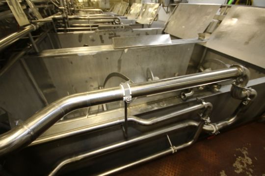 14,000 lb. S/S Ribbon Blender, with 75 hp Motor, 460 Volts, 3 Phase, Internal Blending Compartment Dims.: Aprox. 144" L x 60" W x 66" Deep, with Bottom Discharge, Overall Dims. of Blender: Aprox. 186" L x 67" W x 107" H, Mounted on S/S Legs (BLENDER #14) (INV#82853)(LOCATED IN CHAMPAIGN, IL) (Handling, Loading & Site Management Fee: $12,000)