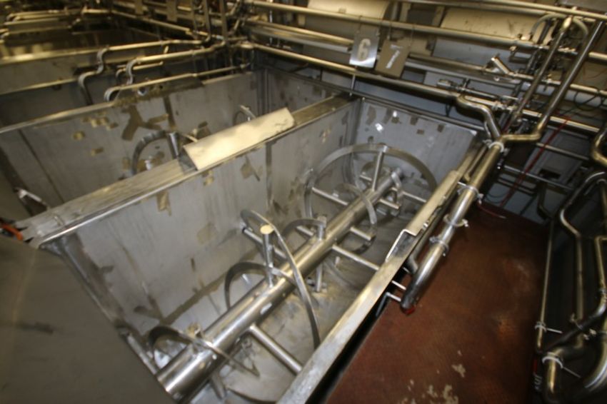 14,000 lb. S/S Ribbon Blender, S/N 70-197, L.H., Internal Blending Compartment Dims.: Aprox. 144" L x 60" W x 66" Deep, with Bottom Discharge, Overall Dims. of Blender: Aprox. 186" L x 67" W x 107" H, Mounted on S/S Legs (NOTE: Missing Motor--See Photographs) (BLENDER #7)(INV#82582) (LOCATED IN CHAMPAIGN, IL) (Handling, Loading & Site Management Fee: $12,000)