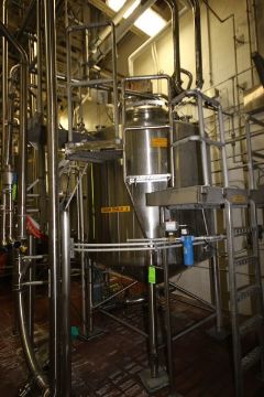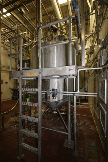 DCI 1,000 Gal. S/S Single Wall Cone Bottom Tank, S/N 98-D-57423, with Reliance 3 hp Top Mounted Agitation Motor, with S/S Side Sweep Agitation, Dome Top, Oveall Height: Aprox. 150" Tall (NOTE: Does Not Include Platform) (SEMI BULK 3) (INV#81173) (LOCATED @ MDG AUCTION SHOWROOM 2.0 IN MONROEVILLE, PA) (Handling, Loading & Site Management Fee: $1500)