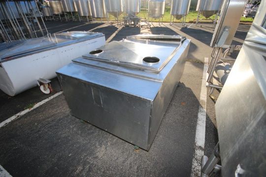 Aprox. 500 Gal. S/S Jacketed Horizontal Tank, with S/S Hinge Lids, Internal Tank Dims.: Aprox. 76" L x 42" W x 20" Deep, with Frontal Slope (Bottom of Tank), Mounted on Casters (INV#80043)(Located @ the MDG Auction Showroom 2.0 in Monroeville, PA)(Handling, Loading & Site Management Fee: $250.00 USD)