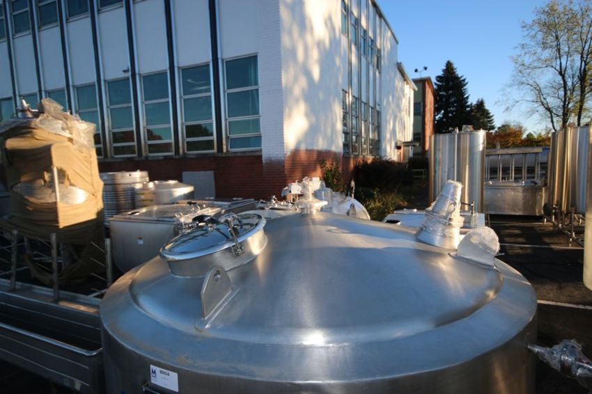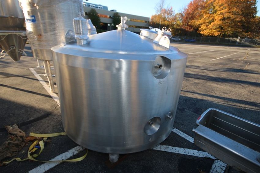 2013-2014 ABC 1,500 Liters S/S Jacketed Tank, MOC = AISI316, with Single S/S CIP Spray Ball, with Slope Bottom, Mounted on S/S Legs (INV#80054)(Located @ the MDG Auction Showroom 2.0 in Monroeville, PA)(Handling, Loading & Site Management Fee: $250.00 USD)
