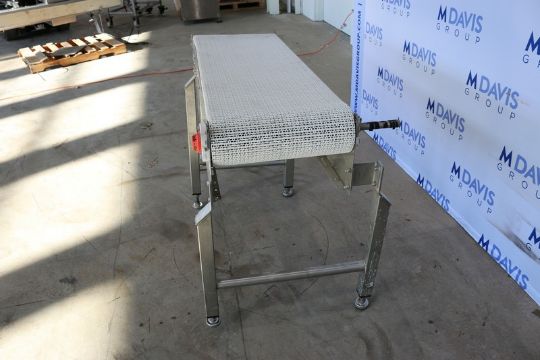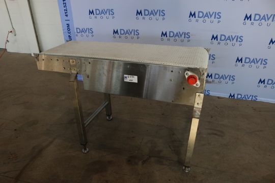Straight Section of S/S Conveyor, with White Interlock Belt, Aprox. 55" L x 18" H Belt, Mounted on S/S Legs (INV#81374)(Located @ the MDG Showroom 2.0 - Monroeville, PA)(Rigging, Loading & Site Management Fee: $150 USD)