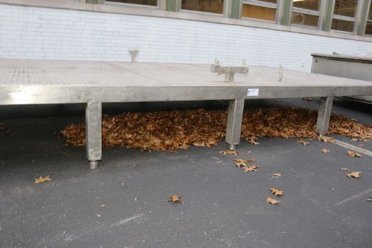 S/S Platform, Overall Dims.: Aprox. 161" L x 78-1/2" W x 20" H (Platform to Ground with Some Hand Rails & Associated Components; Does Not Include S/S Paneling) (INV#80079)(Located @ the MDG Auction Showroom 2.0 in Monroeville, PA)(Handling, Loading & Site Management Fee: $250 USD)