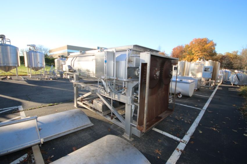 Blentech Dual Ribbon S/S Jacketed Blender / Cheese Cooker, M/N TP-28133, 791 Gallon Working Capacity, 4,887 LBS Capacity Based on Density of Water, 81 SQ Ft Jacket Area, YOM-1993, MAWR 90 @ 332, MDMT -20 @ 90 PSIG, 28" Diameter Agitators, with Dual S/S Clad 15 hp Motors, with S/S Lids & S/S Control Panel (INV#78168)(Located @ the MDG Showroom 2.0 in Monroeville, PA)(Handling, Loading & Site Management Fee: $750.00 USD)