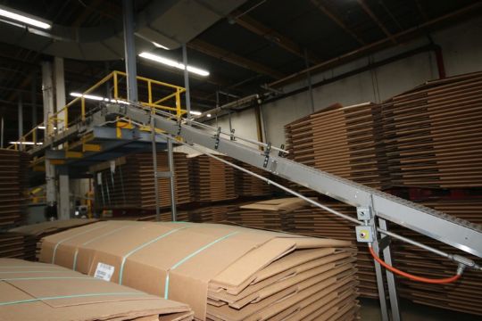 (1) Section of Product Conveyor, Aprox. 75 ft. L Overall Length, Includes (1) Incline Section & (1) Decline Conveyor Sectio, with Straight Section with (1) Curve, with Aprox. 7-1/2" W Plastic Belt, with Drives & Plastic Guide Rails (LOCATED IN CHAMPAIGN, IL) (RIGGING, LOADING AND SITE MANAGEMENT FEE: $1500)