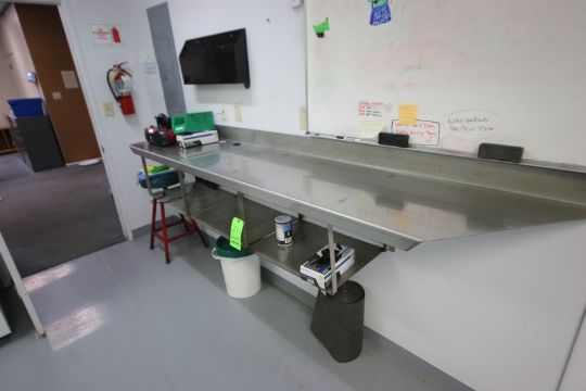 S/S Lab Counter, Overall Dims.: Aprox. 100" L x 20" W Counter Top (LOCATED IN SAHUARITA, AZ) (RIGGING, LOADING, & SITE MANAGEMENT FEE: $150.00 USD)