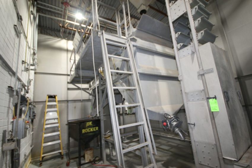 S/S De-Rocker Bath, with Aprox. 4 ft. 11" W Conveyor, with Flights, with S/S Frame (NOTE: Cleans Nuts Before Hits Jesse Pasturization Tunnel)(LOCATED IN SAHUARITA, AZ) (RIGGING, LOADING, & SITE MANAGEMENT FEE: $600.00 USD)