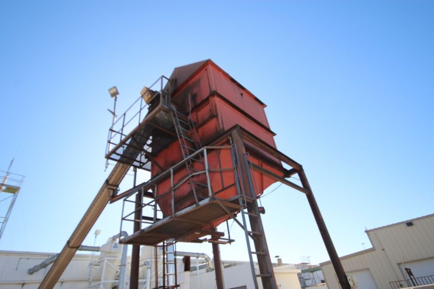 Mild Steel Hopper Housing, Mounted on Mild Steel Frame with Ladder (LOCATED IN SAHUARITA, AZ) (RIGGING, LOADING, & SITE MANAGEMENT FEE: $650.00 USD)