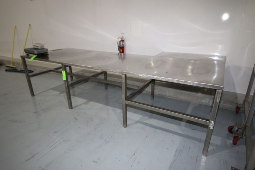 S/S "L" Shape Table, Overall Dims.: Aprox 144" L x 72" W x 36" H, Mounted on S/S Frame (LOCATED IN SAHUARITA, AZ) (RIGGING, LOADING, & SITE MANAGEMENT FEE: $50.00 USD)