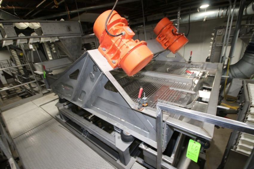 Jesse Dual Lane S/S Shaker Deck, Aprox. 37-1/2" W Lanes with Screens, with Dual 5 hp Top Mounted Motors, Mounted on S/S Frame (LOCATED IN SAHUARITA, AZ) (RIGGING, LOADING, & SITE MANAGEMENT FEE: $150.00 USD)