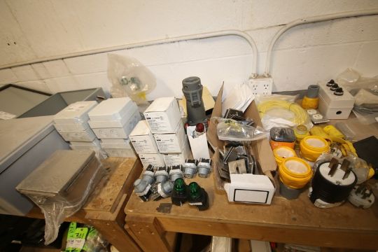 Lot of Assorted Electrical Including Boxes, Switches, Plugs, Breakers, Honeywell Spark Switch & Contacts (INV#81519)(Located @ the MDG Auction Showroom in Pgh., PA)(Handling, Loading & Site Management Fee: $40.00)