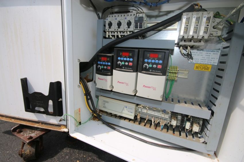 Blueprint Automation Collator, with Control Panel Containing (2) Allen-Bradley PowerFlex 40 VFDs, (1) Allen-Bradley PowerFlex 4 VFD, with Allen-Bradley Micro-Logix 1000 PLC, with Aprox. 159” L Straight Section of Conveyor, Mounted on Wheels (Unit #17)(INV#80204)(Located @ the MDG Auction Showroom in Pittsburgh, PA)(Handling, Loading & Site Management Fee: $200.00 USD)